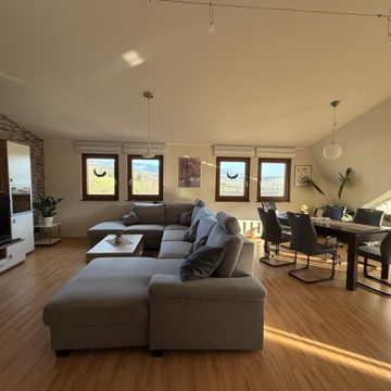 Erleben Sie eine helle, großzügige 110 qm Ferienwohnung mit modernem Ambiente und wunderschöner Aussicht – perfekt für Familien und kleine Gruppen.